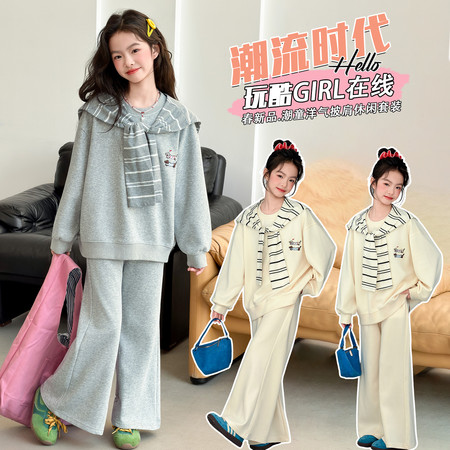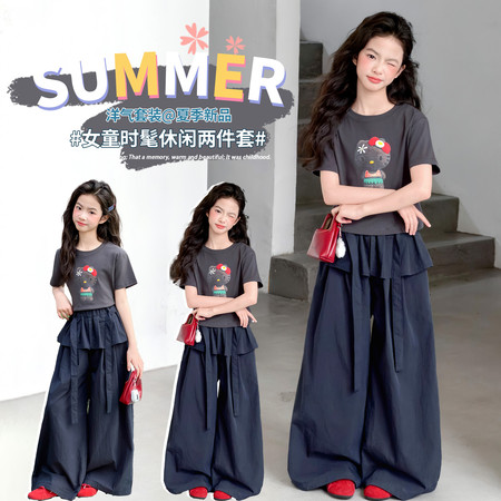 1*0下载“26A15字母印花上衣花边屁帘阔腿裤套装”图片包